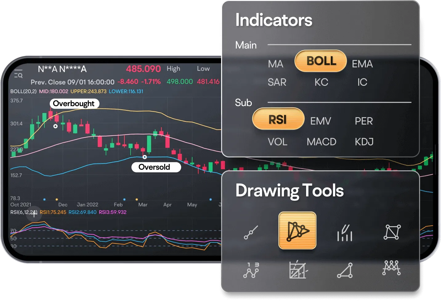 Quickly reveal price trends with 100+ insightful indicators and drawing tools enhanced by a patented new method.